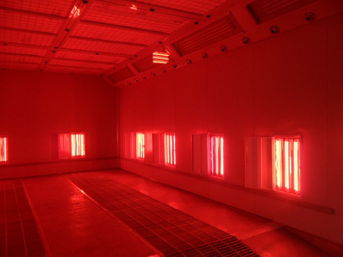 紅外線烤漆房是完全利用紅外線發熱裝置作為紅外線發熱載體的一種噴烤漆房。